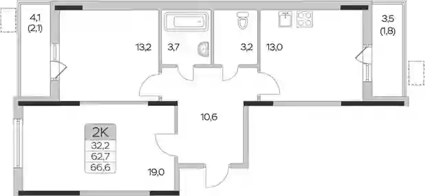2-к.квартира, 62.7 м², 2 эт. в ЖК Пироговская ривьера. СЗ КОМФОРТИНВЕСТ Корпус 5