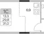 Студия, 29.8 м², 2 эт. в ЖК Пироговская ривьера. СЗ КОМФОРТИНВЕСТ Корпус 5