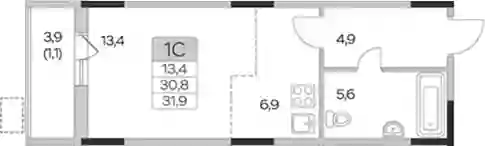 Студия, 30.8 м², 3 эт. в ЖК Пироговская ривьера. СЗ КОМФОРТИНВЕСТ Корпус 5