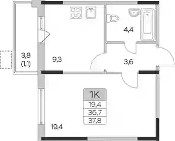 1-к.квартира, 36.7 м², 3 эт. в ЖК Пироговская ривьера. СЗ КОМФОРТИНВЕСТ Корпус 6