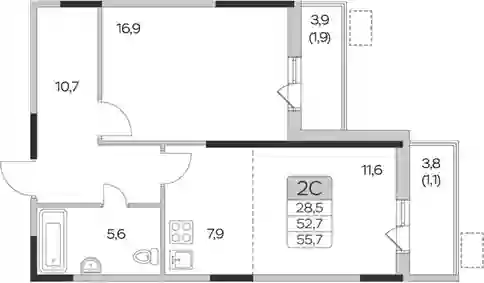 1-к.квартира, 52.7 м², 2 эт. в ЖК Пироговская ривьера. СЗ КОМФОРТИНВЕСТ Корпус 6