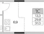 Студия, 29.8 м², 2 эт. в ЖК Пироговская ривьера. СЗ КОМФОРТИНВЕСТ Корпус 6