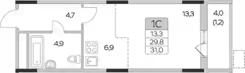 Студия, 29.8 м², 3 эт. в ЖК Пироговская ривьера. СЗ КОМФОРТИНВЕСТ Корпус 6