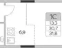 Студия, 30.7 м², 3 эт. в ЖК Пироговская ривьера. СЗ КОМФОРТИНВЕСТ Корпус 6