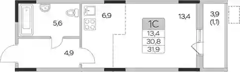 Студия, 30.8 м², 6 эт. в ЖК Пироговская ривьера. СЗ КОМФОРТИНВЕСТ Корпус 6