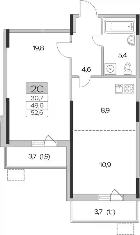 1-к.квартира, 49.6 м², 4 эт. в ЖК Пироговская ривьера. СЗ КОМФОРТИНВЕСТ Корпус 7