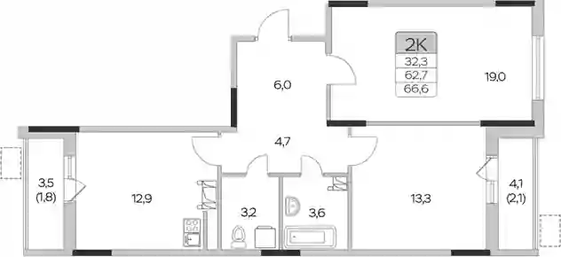 2-к.квартира, 62.7 м², 3 эт. в ЖК Пироговская ривьера. СЗ КОМФОРТИНВЕСТ Корпус 7