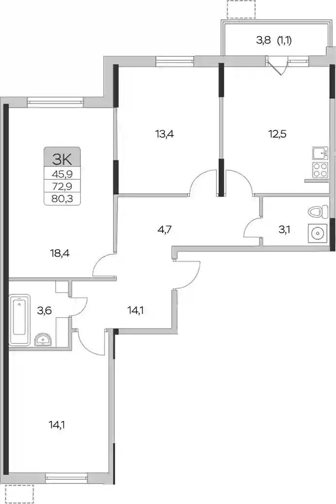 3-к.квартира, 79.2 м², 2 эт. в ЖК Пироговская ривьера. СЗ КОМФОРТИНВЕСТ Корпус 7
