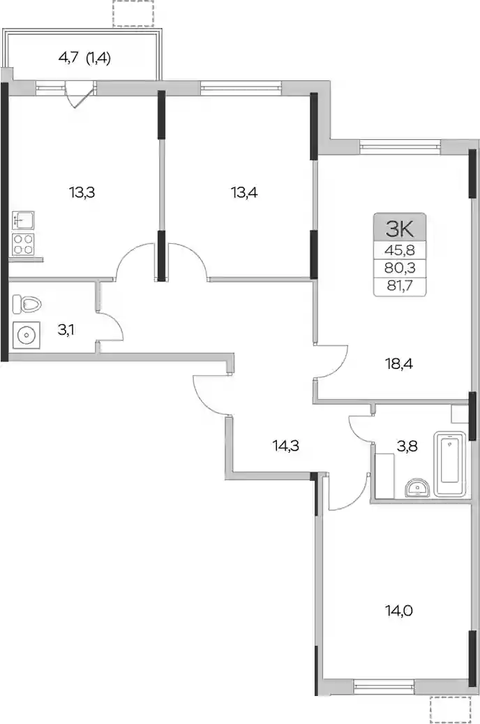 3-к.квартира, 80.3 м², 2 эт. в ЖК Пироговская ривьера. СЗ КОМФОРТИНВЕСТ Корпус 7