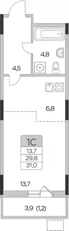 Студия, 29.8 м², 4 эт. в ЖК Пироговская ривьера. СЗ КОМФОРТИНВЕСТ Корпус 7