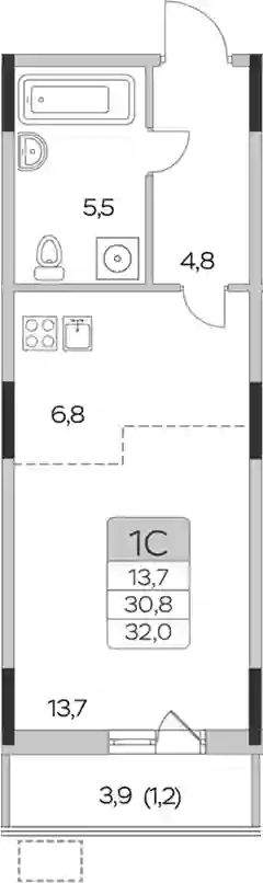 Студия, 30.8 м², 3 эт. в ЖК Пироговская ривьера. СЗ КОМФОРТИНВЕСТ Корпус 7