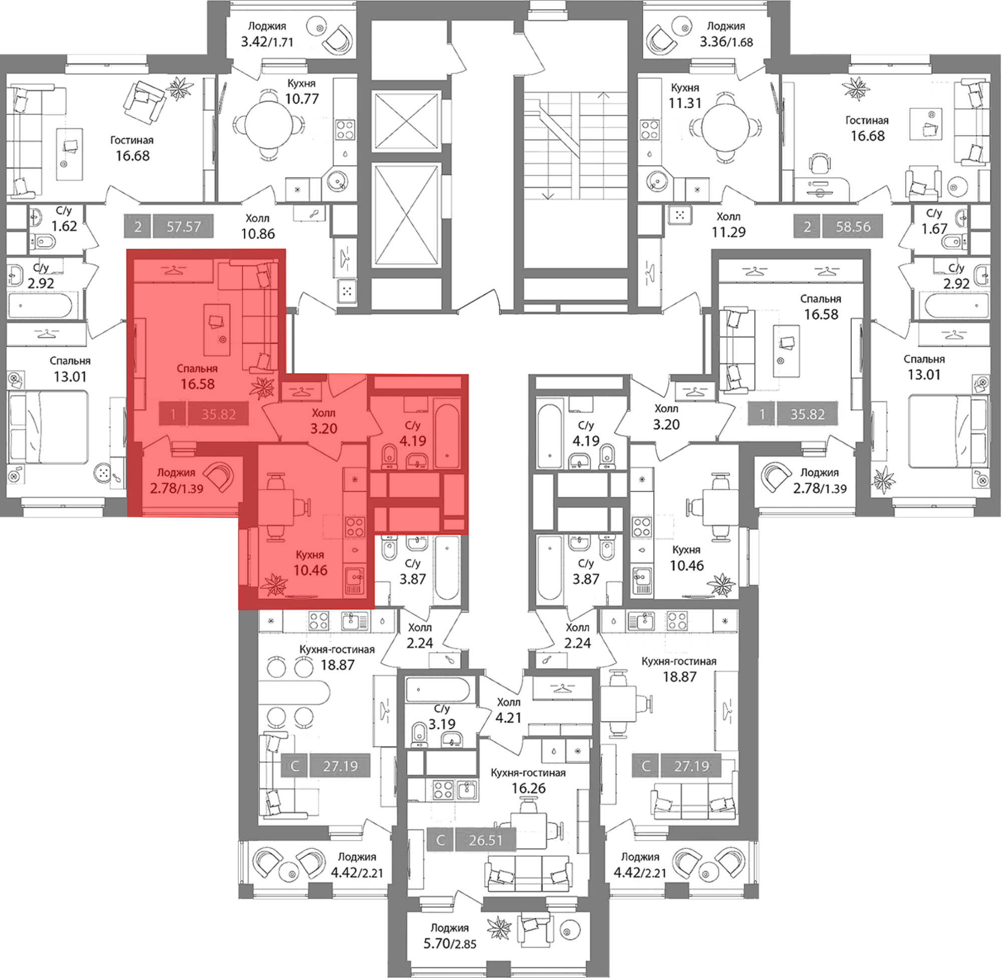 11 284 846 ₽1-к.квартира, 35.44 м², 4 эт.