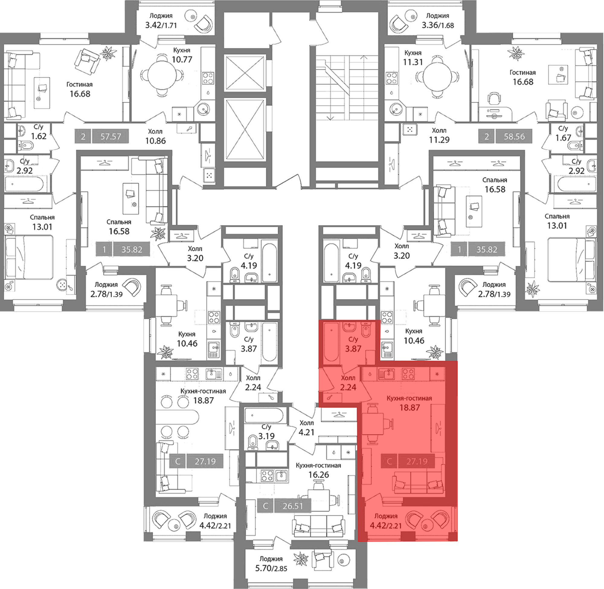 9 712 032 ₽Студия, 26.97 м², 3 эт.