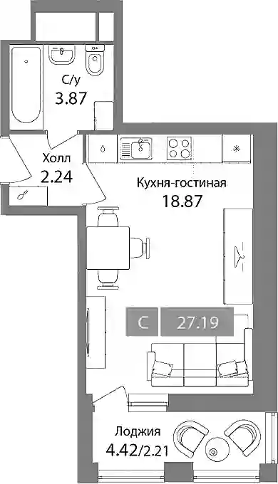 8 787 183 ₽Студия, 27.23 м², 3 эт.