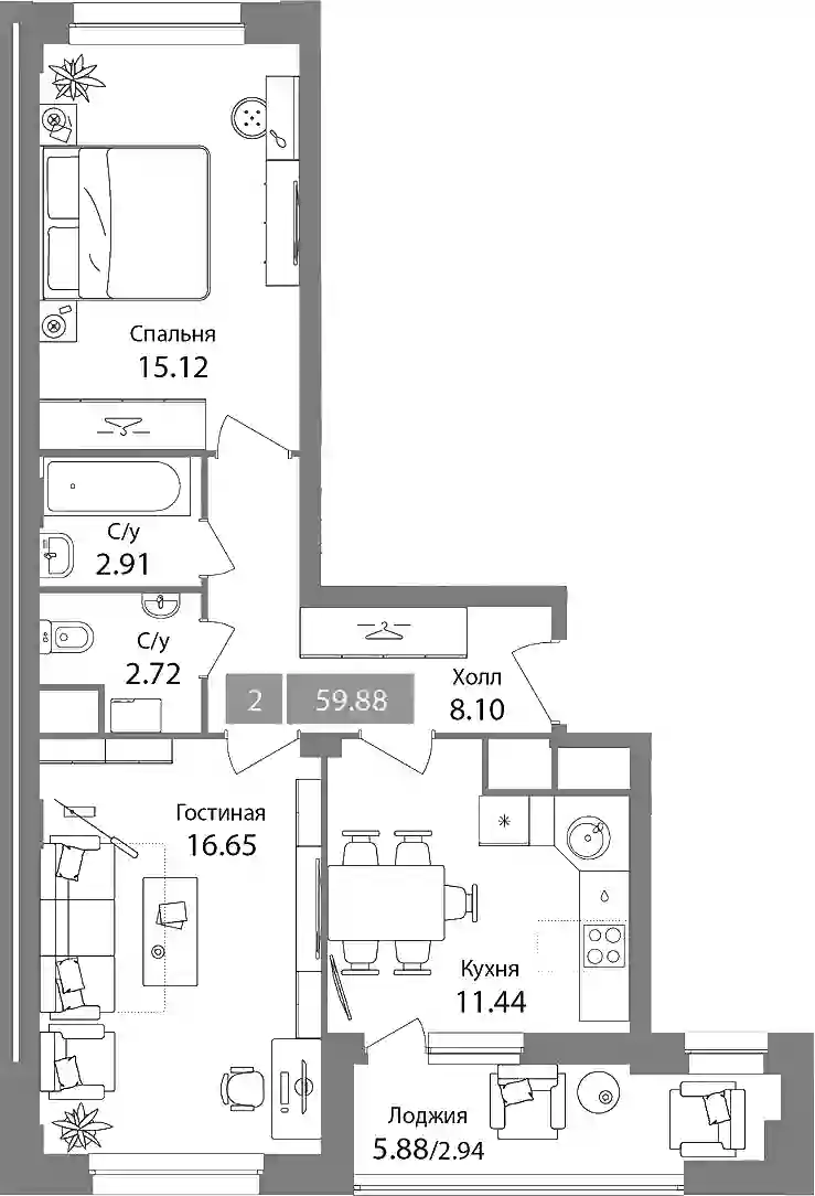 15 530 810 ₽2-к.квартира, 55.47 м², 10 эт.