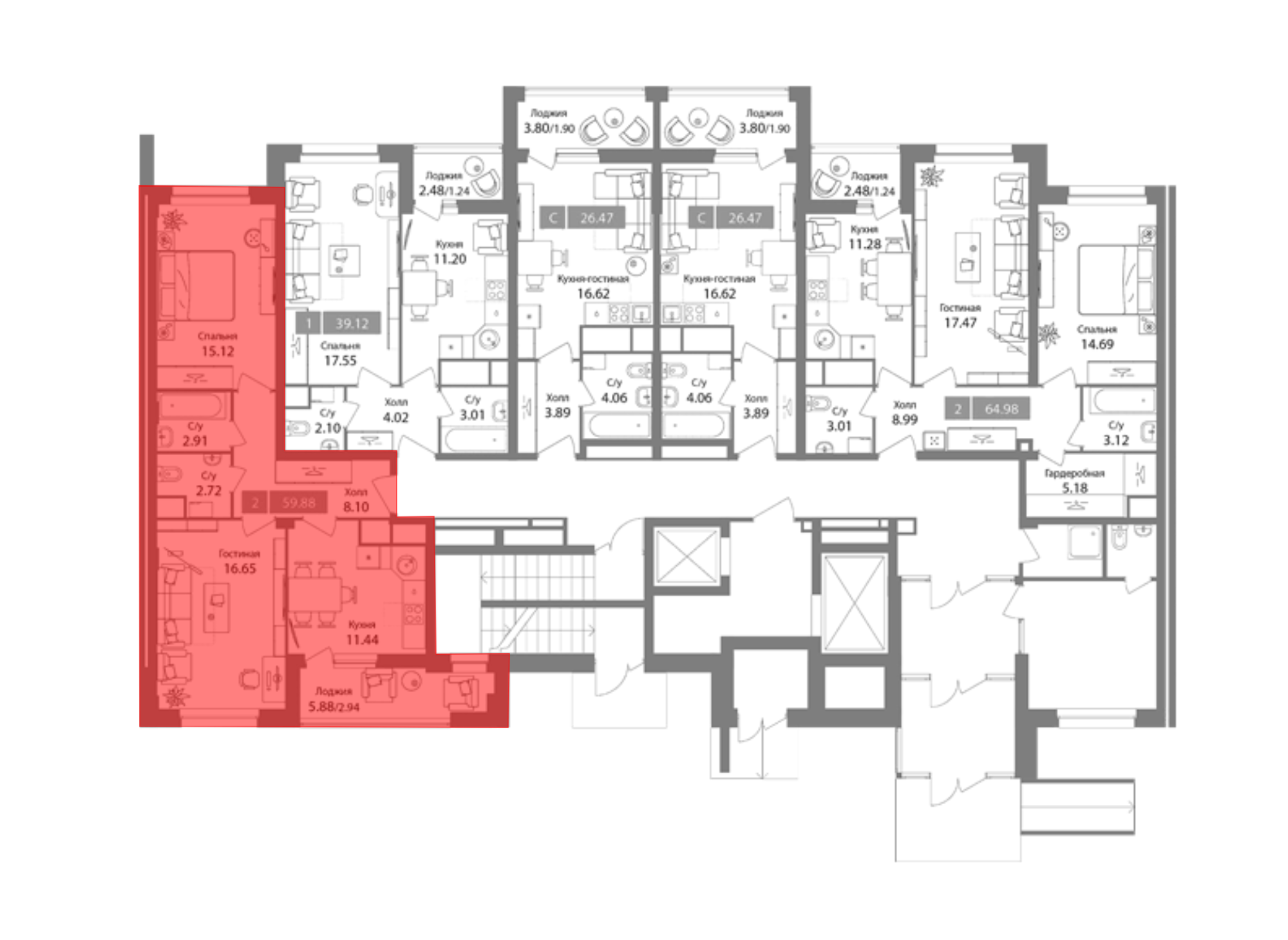 15 507 369 ₽2-к.квартира, 55.47 м², 6 эт.