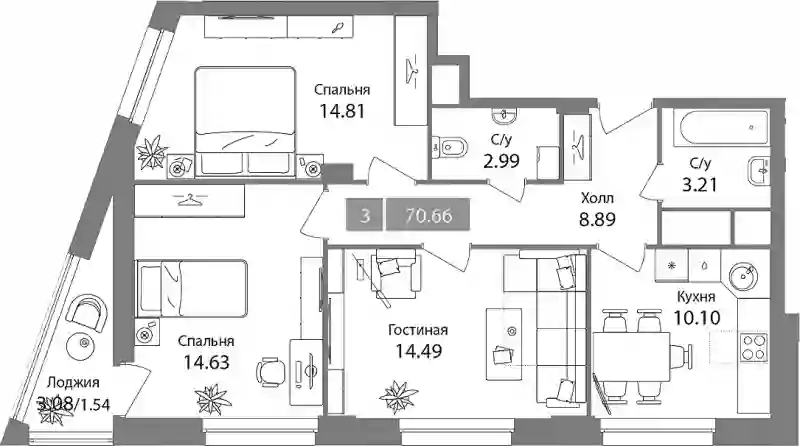 19 458 134 ₽3-к.квартира, 73.12 м², 14 эт.