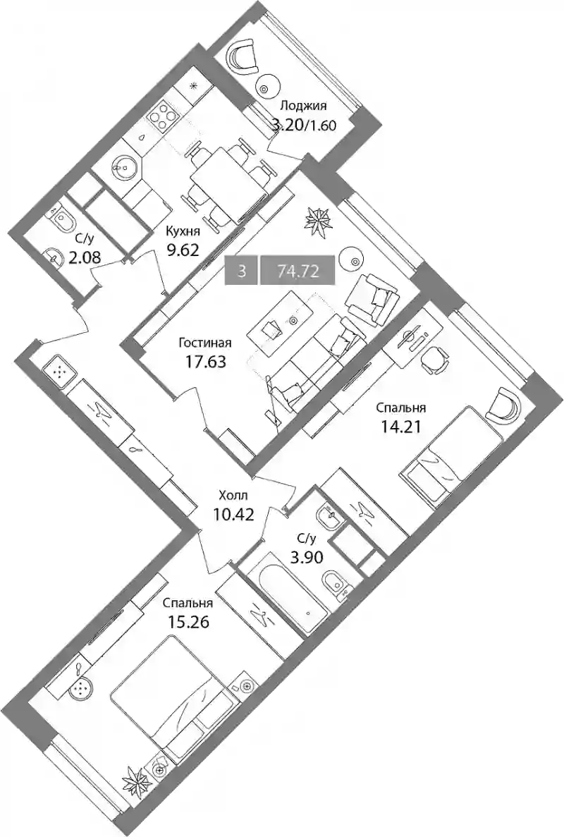 20 248 891 ₽3-к.квартира, 79.19 м², 10 эт.