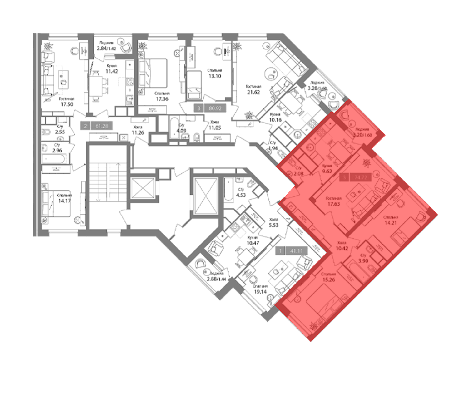 20 680 238 ₽3-к.квартира, 79.32 м², 13 эт.