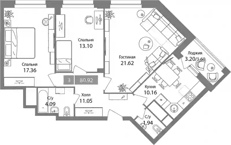 20 362 877 ₽3-к.квартира, 79.19 м², 13 эт.