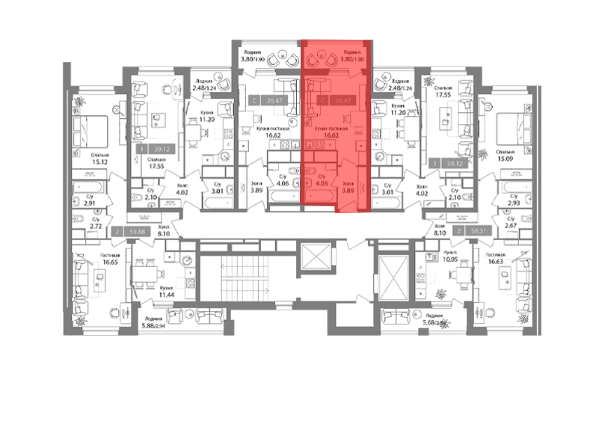 12 178 220 ₽1-к.квартира, 39.67 м², 17 эт.