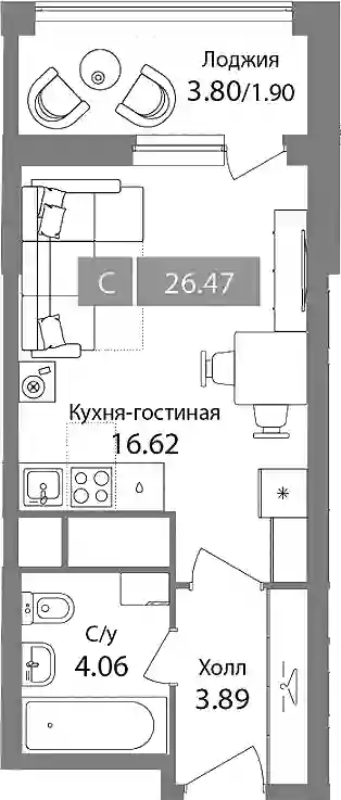 8 964 813 ₽Студия, 24.98 м², 7 эт.