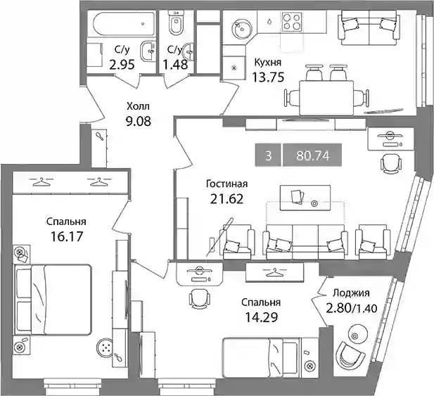 3-к.квартира, 79.34 м², 13 эт. в ЖК Планерный квартал Корпус 4/1