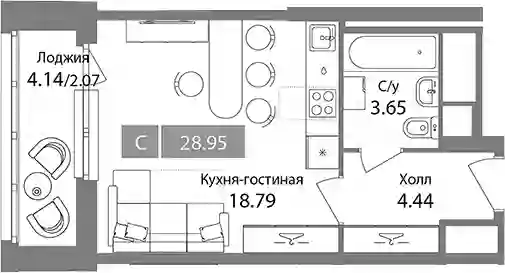 9 058 429 ₽Студия, 27.89 м², 14 эт.