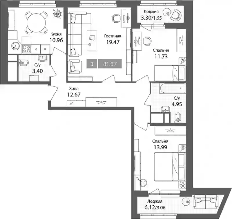21 079 905 ₽3-к.квартира, 79.34 м², 12 эт.