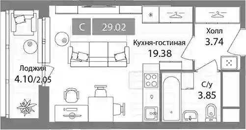 8 754 202 ₽Студия, 26.97 м², 2 эт.