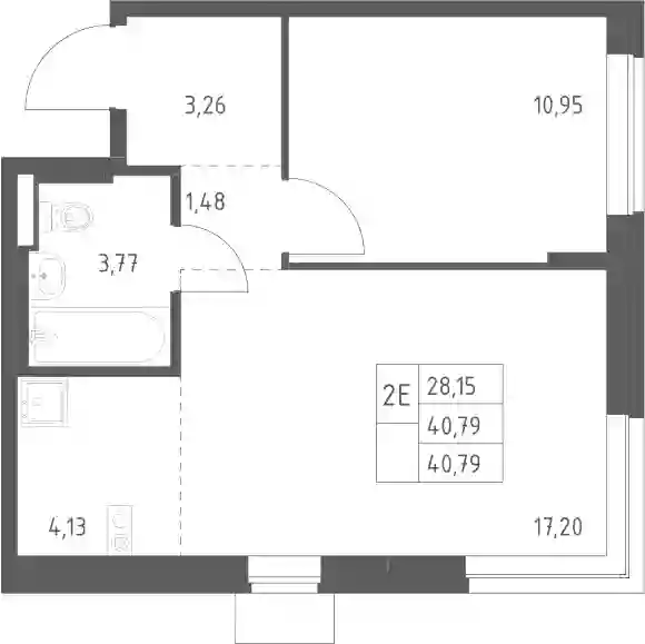 10 304 298 ₽2-к.квартира, 40.79 м², 1 эт.