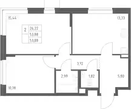 14 626 804 ₽2-к.квартира, 53.88 м², 7 эт.