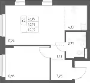 10 630 624 ₽2-к.квартира, 40.79 м², 1 эт.