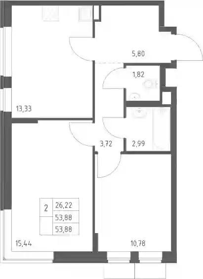 12 160 756 ₽2-к.квартира, 53.88 м², 2 эт.