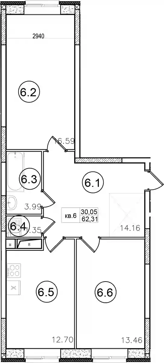 В проекте предусмотрены квартиры различной планировки, включая 1-, 2- и 3-комнатные варианты. Квартиры сдаются без отделки и высотой потолков 2,8 метров.