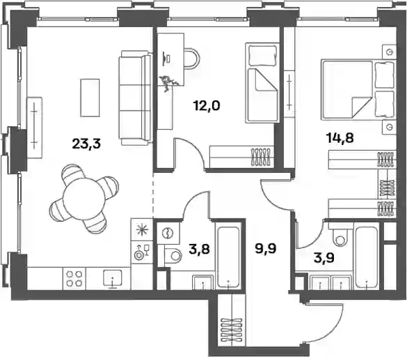 В комплексе предложен широкий выбор планировочных решений от компактных студий площадью 28 кв. метров до просторных пентхаусов с каминами площадью до 156 кв. метров. Также представлены редкие форматы квартир: с террасой, мастер-спальней и окном в ванной комнате. Уникальность проекта заключается в разнообразии типов остекления: в наличии 48 вариантов, включая джабо-окна, французские балконы и эркеры. Высота потолков составляет 3,1 метра, а в пентхаусах достигает 3,6 метра.