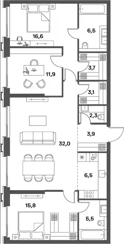 76 099 900 ₽4-к.квартира, 107.8 м², 15 эт.