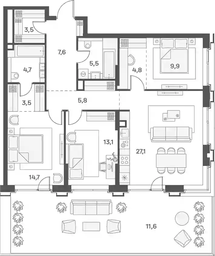 60 108 419 ₽4-к.квартира, 99.7 м², 7 эт.