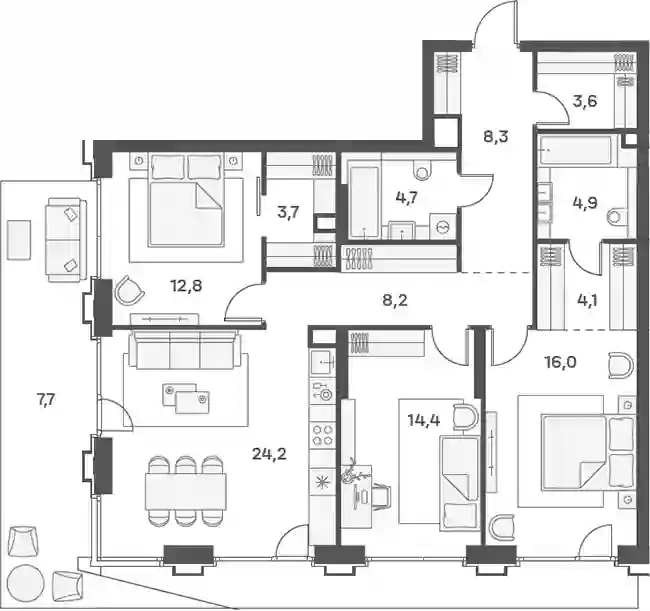 60 108 419 ₽4-к.квартира, 99.7 м², 7 эт.