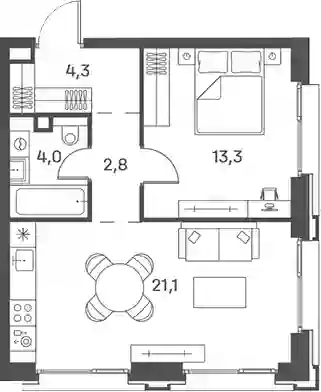 22 945 350 ₽1-к.квартира, 41.5 м², 27 эт.