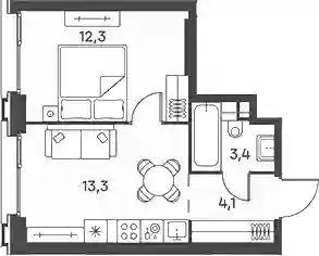 2-к.квартира, 32.8 м², 14 эт. в ЖК PORTLAND Корпус 8