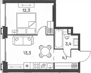 2-к.квартира, 32.8 м², 16 эт. в ЖК PORTLAND Корпус 8