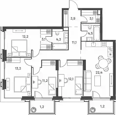 60 108 419 ₽4-к.квартира, 99.7 м², 7 эт.