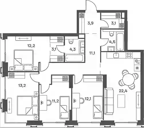 5+к.квартира, 101.1 м², 9 эт. в ЖК PORTLAND Корпус 8