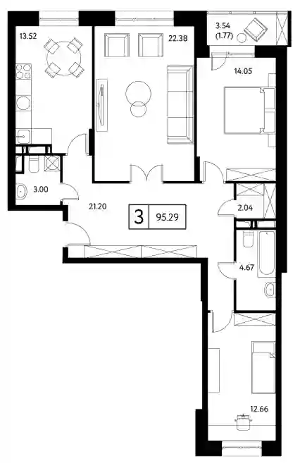 3-к.квартира, 92.43 м², 17 эт. в ЖК Преображенская площадь Корпус 2