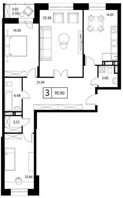 3-к.квартира, 92.71 м², 15 эт. в ЖК Преображенская площадь Корпус 2