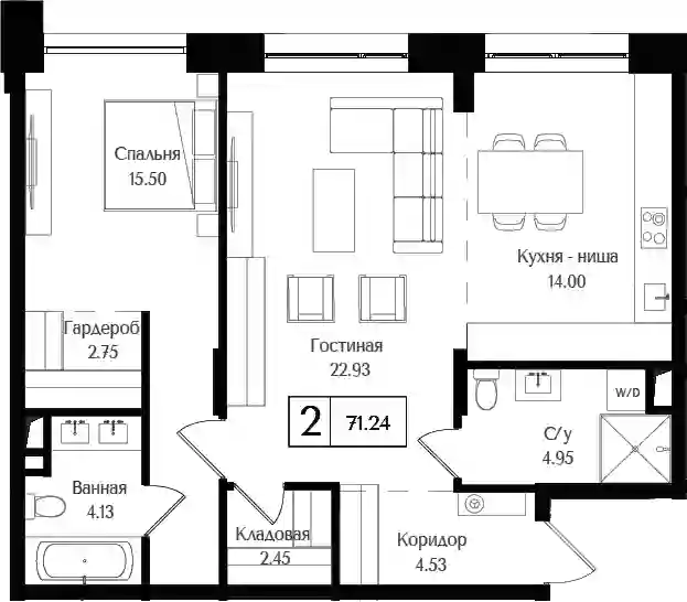 2-к.квартира, 71.24 м², 15 эт. в ЖК Преображенская площадь Корпус 3
