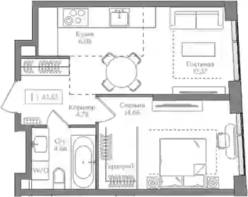 1-к.квартира, 42.55 м², 8 эт. в ЖК Преображенская площадь Корпус 1