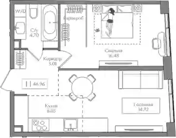 1-к.квартира, 46.96 м², 12 эт. в ЖК Преображенская площадь Корпус 1