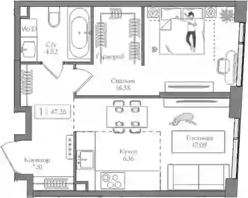 В жилом комплексе представлен широкий выбор планировочных решений: от уютных студий до просторных 4-х комнатных квартир европейского формата. Площадь квартир варьируется от 28 до 88 квадратных метров. В квартирах предусмотрены ниши для шкафов и гардеробных, а также кухни-гостиные и мастер-спальни с отдельной гардеробной комнатой и санузлом. На верхних этажах находятся видовые пентхаусы площадью от 121 до 297 кв. метров с собственными террасами. Квартиры сдаются без отделки и внутренних перегородок. В каждой квартире высокие потолки и панорамное остекление. Из 95% квартир открывается вид на Москву-реку.